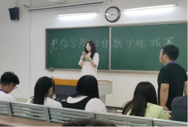 9月26日晚,买球赛十大平台在教二407教成功举办校园十佳歌手大选拔赛电信学院初赛。