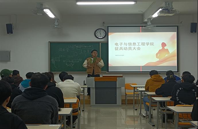 会议共有两个议程。第一项议程由侯绪芳老师作动员讲话,侯老师将身边人入伍的故事分享给同学们,让同学们对部队有了一定了解。在会议上他谈到了学生们的入伍情怀,谈到了新时代青年应有的抱负。大学生是祖国未来的栋梁,应该积极响应党和政府的征兵号召,把个人理想抱负融入强军梦,中国梦。然后侯老师详细的为同学们讲解了入伍优待政策,解释了同学们对入伍的一些相关问题并且介绍了入伍条件。