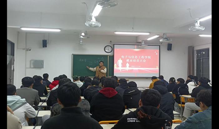会议开始,由侯绪芳老师作就业动员讲话。侯老师针对的当前大学生就业情况提出三点要求,一是认清就业形势;二是培养自我意识;三是把握就业机会、做好就业准备。在会议上,侯老师以自身经历以及身边人的真实故事给同学们作参考并鼓励同学们要把握住机遇、把目光放长远,为自己的未来多做打算。也告诫同学们对自己未来的规划好,不要好高骛远,要切合实际,既要仰望星空,又要脚踏实地。