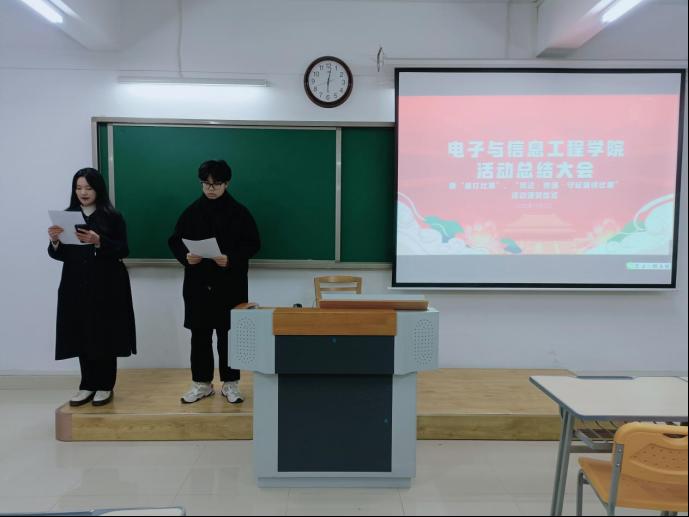 随后,主持人宣读了两次比赛的获奖学生名单。荣获速打比赛一等奖的是22级计算机一班的吴梦涵同学,荣获二等奖的分别是21级电信一班的吴建豪同学、22级电信一班的黄超同学和21级电信一班的阚心培三位同学。22级电信二班王家乐等五位同学荣获三等奖。