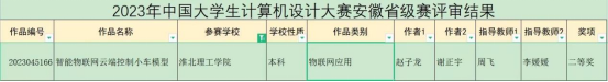 买球赛十大平台积极推进教学改革创新,用“以赛促教”的教学模式努力培养应用型人才,在“2022年中国大学生计算机设计大赛”中获得了省级二等奖、国家级三等奖;在“2022年圆梦杯硬件设计大赛”中获得省级三等奖、国家级优秀奖;在“2022年全国大学生英语竞赛C类”中获得国家级三等奖;在“2022年大学生创新创业比赛”中,共有26个项目获得省级立项;在“2023年第四届全国大学生算法设计与编程挑战赛春季赛”中获得国家级优秀奖;在“2023年安徽省高校物联网应用创新大赛”中,获得了一个一等奖、三个二等奖、两个三等奖;在“2023年中国大学生计算机设计大赛”中荣获省级二等奖;在“2023圆梦杯全国大学生智能硬件设计大赛”中省级三等奖;在“2023年淮北市职业技能大赛人工智能训练师赛”中获得一等奖28人,二等奖42人,三等奖42人;在2023年第十届“挑战杯·华安证券”安徽省大学生课外学术科技赛中获得了两个省级三等奖。