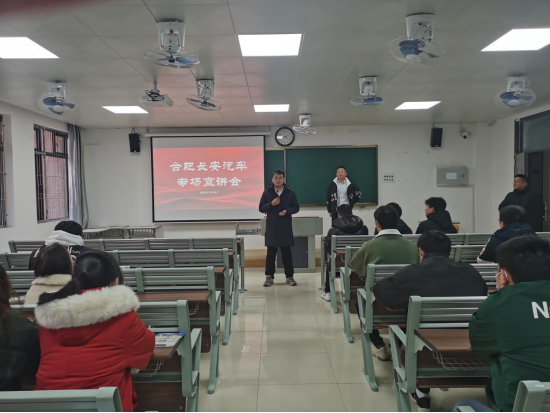 12月4日下午,买球赛十大平台于一教205举办2024届毕业生专场宣讲会,合肥长安汽车有限公司进行了宣讲。院书记助理侯绪芳、辅导员孙浩以及毕业班全体学生参加了本次宣讲招聘会。