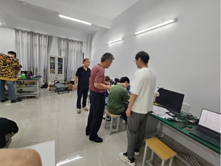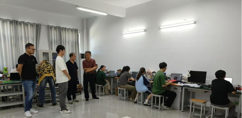 杨兵首先深入备赛现场,细致询问了备赛进展并认真听取了竞赛指导教师的详细汇报,对同学们和指导老师们给予了高度赞扬。他强调,全国大学生电子设计竞赛不仅是检验学生专业知识与技能的重要舞台,更是培养学生团队协作能力、创新思维和实践能力的宝贵机会。