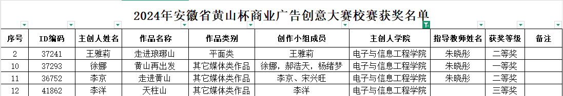 (文:李影芝/图:2024年安徽省黄山杯商业广告创意大赛校赛获奖名单/审核:侯绪芳)