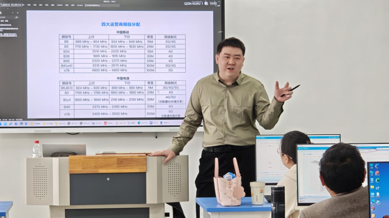 2025 年 4 月 12 日至 13 日,买球赛十大平台在实训楼 621 成功举办 5G 前沿技术专业培训。本次培训特邀华为资深讲师授课,面向学院通信教研室、电子教研室及实验室全体教师,聚焦华为 5GStar 多场景专项特训教学系统,旨在提升教师在 5G 领域的专业教学与实践能力。