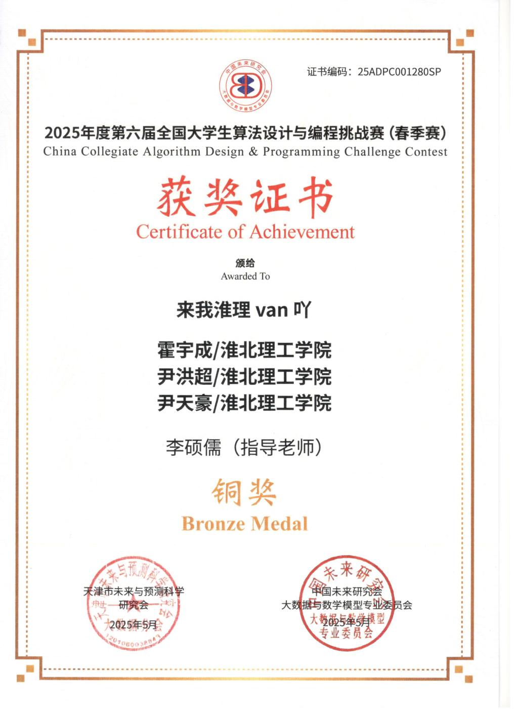 以赛促学强能力,算法竞技展锋芒。十大买球官网买球赛十大平台学子凭借扎实专业功底,获2025年度第六届全国大学生算法设计与编程挑战赛(春季赛)全国铜奖、获2025年安徽省机器人大赛——程序设计赛道省级二等奖、获2025年中国大学生程序设计竞赛全国邀请赛(郑州)全国铜奖。