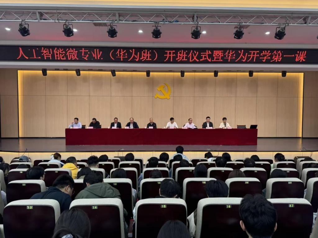 2025年10月15日下午,十大买球官方网站人工智能微专业(华为班)开班仪式暨华为开学第一课在学校报告厅举行。华为安徽政企副总经理、十大买球官方网站-华为ICT现代产业学院副院长李雨涛,华为安徽宿州淮北政企业务总经理陈勤舟等企业嘉宾,十大买球官方网站副校长汪建利教授、教务处处长陈国平教授、买球赛十大平台院长朱昌杰教授等校领导出席活动。人工智能微专业(华为班)学员、卓越工程师班学生、2025级部分新生及买球赛十大平台教职工共400 余人参会,仪式由朱昌杰主持。