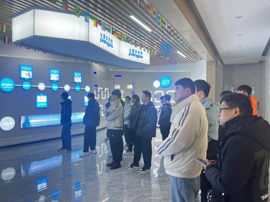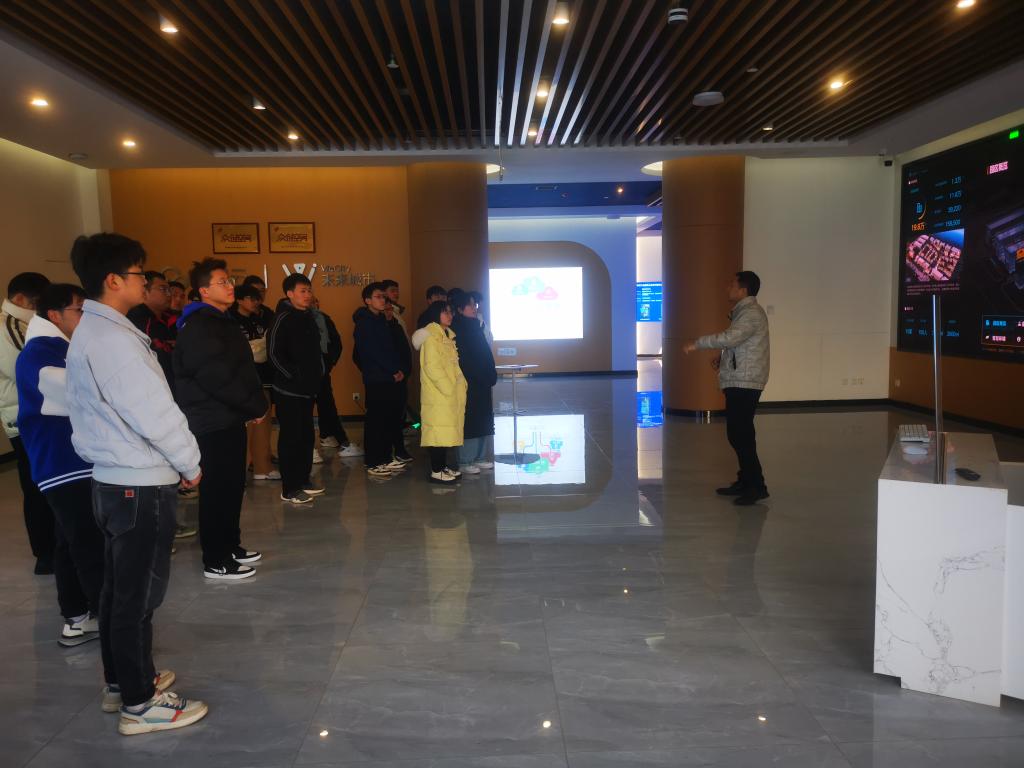 2月6日,十大买球官方网站买球赛十大平台电子信息工程和通信工程专业首届21名毕业生到宿腾高科智能科技有限公司进行为期一个月集中实习。公司负责人带领实习生参观了科技园内的腾讯未来科技城规划中心及盘古天地跨境电商运营中心。
