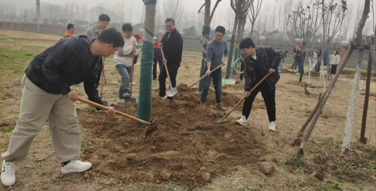 活动现场,支部的党员们热情洋溢,分工合作,默契配合,仿佛春日里的一股暖流,为校园增添了几分生机与活力。他们手持铁锹,扶苗培土,忙碌而有序地穿梭在预定的植树区域。在植树的过程中,党员教师们不仅埋头苦干,还不忘交流心得,分享着植树造林对于环境保护的重要性及其深远意义。