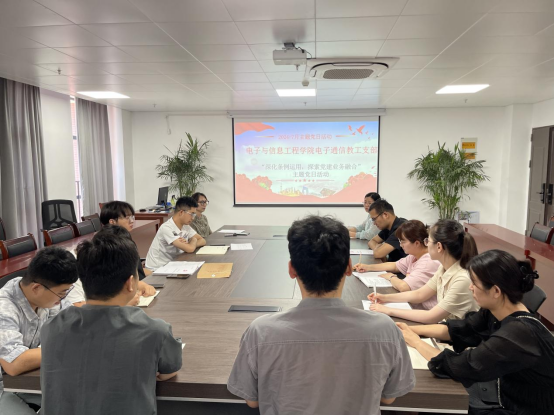 为进一步提高党员干部的政治理论水平,促进党建工作与业务工作的深度融合,2024年7月3日,买球赛十大平台电子通信教工支部召开以“深化条例运用,探索党建业务融合”为主题的党日活动,推动全体党员干部更好地履行职责、服务群众。活动由党支部书记沈元元同志主持,支部全体教工党员参加