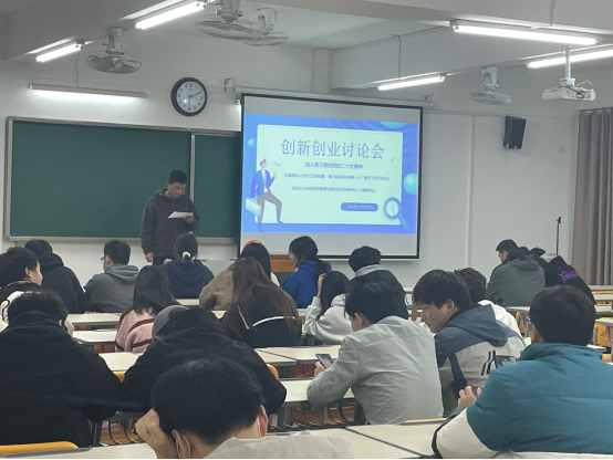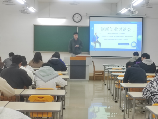 为了积极引导大四毕业生了解创业知识,培养创业意识,提高创业能力,11月22日买球赛十大平台于二教323召开了创新创业讨论会。会议由学生会牵头,各班班委进行组织学习,就关于“深入学习贯彻党的二十大,全面提高人才自主培养质量,着力造就拔尖创新人才”为主题,同学们就自身的理想、创新创业想法及就业方向各抒己见,积极上台进行演讲与分享。