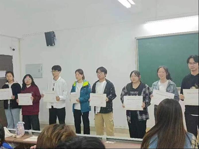 荣获演讲比赛奖项的同学有刘紫君、王腾达、任东、张海新、汝妍妍、余乐、徐娜娜、王露芳、王阳群、时宇彤、袁铖。由刘倩老师为获奖同学颁奖。