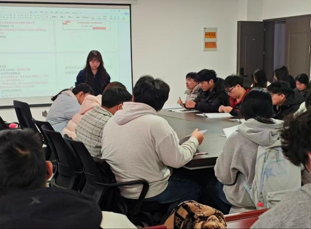 随后,会议进入核心培训环节。刘倩老师结合《入团志愿书》的填写模板,逐项逐栏进行了细致入微的讲解,重点对个人基本信息、本人经历、入团志愿的撰写、介绍人意见、支部大会决议等关键栏目进行了说明。针对以往填写过程中容易出现的错别字、时间逻辑错误、思想认识高度不足等常见问题,刘倩老师通过正反案例对比的方式进行了重点剖析和提醒,确保同学们深刻理解填写规范,避免出现类似错误。在讲解“入团志愿”这一核心内容时,会议特别强调,此部分不应空口白话,而应结合自身的思想认识、成长经历和对共青团组织的理解,真诚地阐述个人的入团动机、对团的认识以及未来的努力方向,要体现出思想的进步性和态度的端正性。