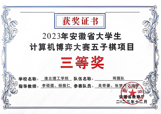 近日,安徽省大学生计算机博弈大赛(安徽省大学生学科和技能竞赛B类项目)在安徽大学举办,十大买球官网买球赛十大平台计算机科学与技术专业学生首次参加此项比赛,取得二等奖1项、三等奖1项的好成绩。